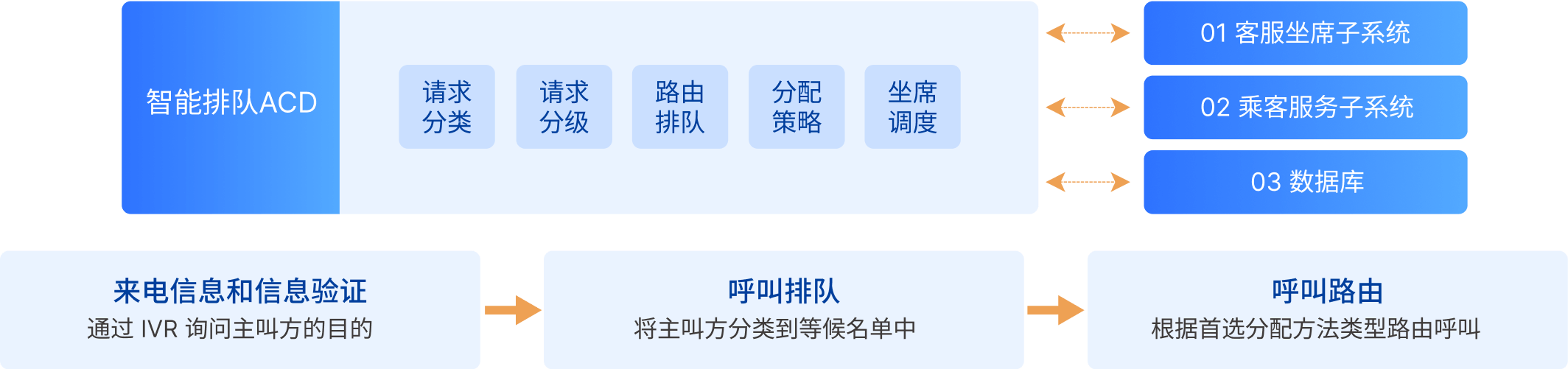 客服中心的有序運轉,依賴於智能排隊程序的調度,在有多個乘客通過不同渠道尋求服務的時候,智能排隊程序可以根據規則,生成排隊隊列,有序調度待服務乘客和客服人員(包括機器人客服)的匹配關係,讓乘客需求盡快得到滿足。用戶的呼叫在ACD交換機排隊之後,引導到不同的受理席,讓乘客盡量減少等待時間,由空閑資源為乘客提供服務