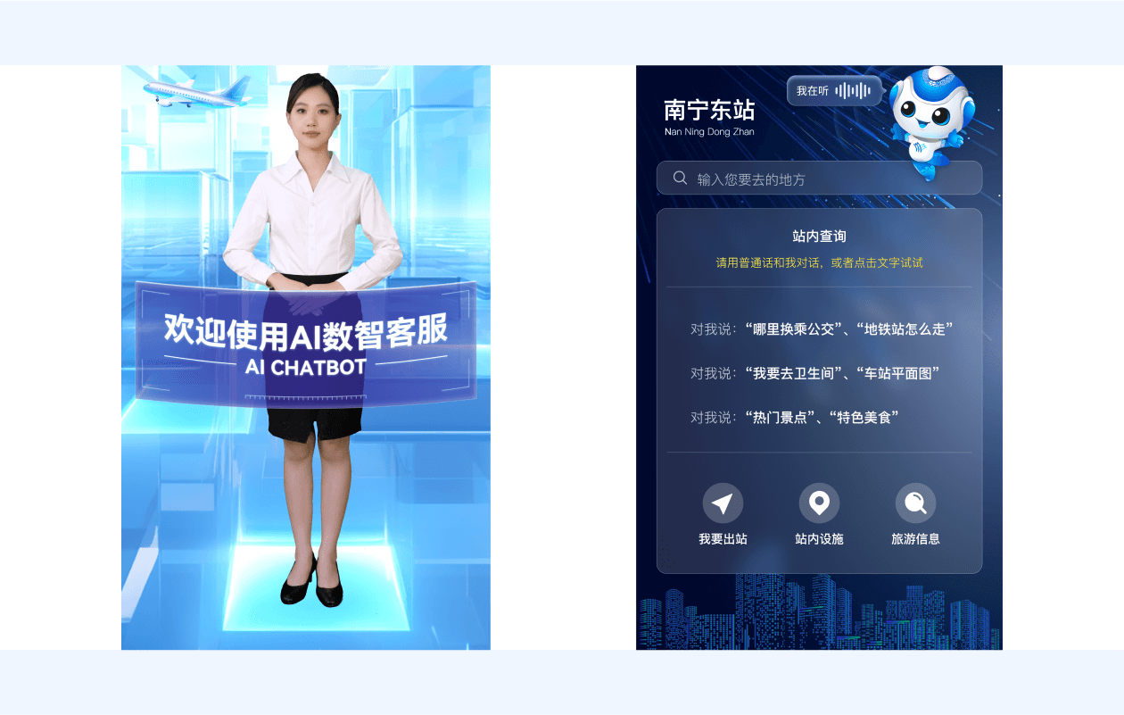 提供服務谘詢、站內引導、融合換乘指導、周邊商家等功能