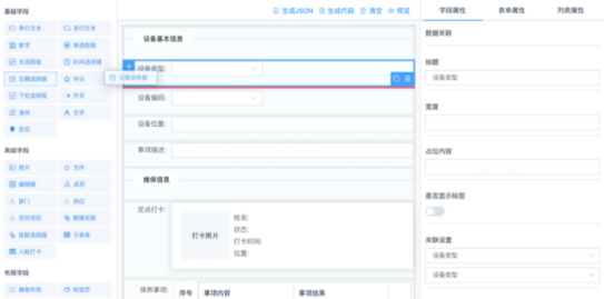 像搭積木一樣設計表單,字段類型豐富、可定義布局樣式,或設置數據聯動、公式函數、邏輯規則等